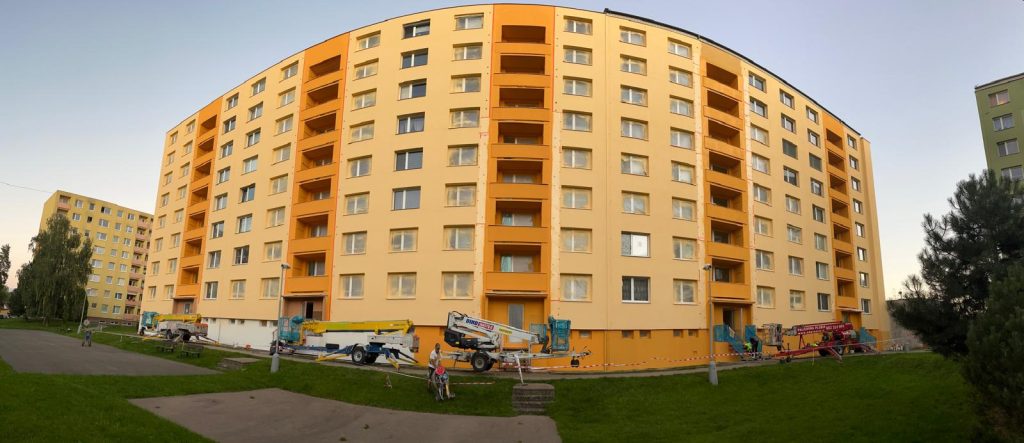 Ve městě Vyškov jsme realizovali kompletní nátěr fasády panelového domu o celkové ploše 5 300 m².